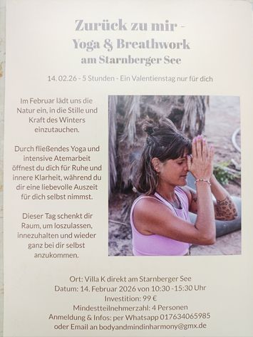 Beschenk dich selbst zum Tag der Liebe und nimm an meinem Retreat am 14.02.2026 teil. Komm mit auf die Reise “zurück zu dir” durch Yoga und Breathwork. Würde mich freuen dich zu sehen.